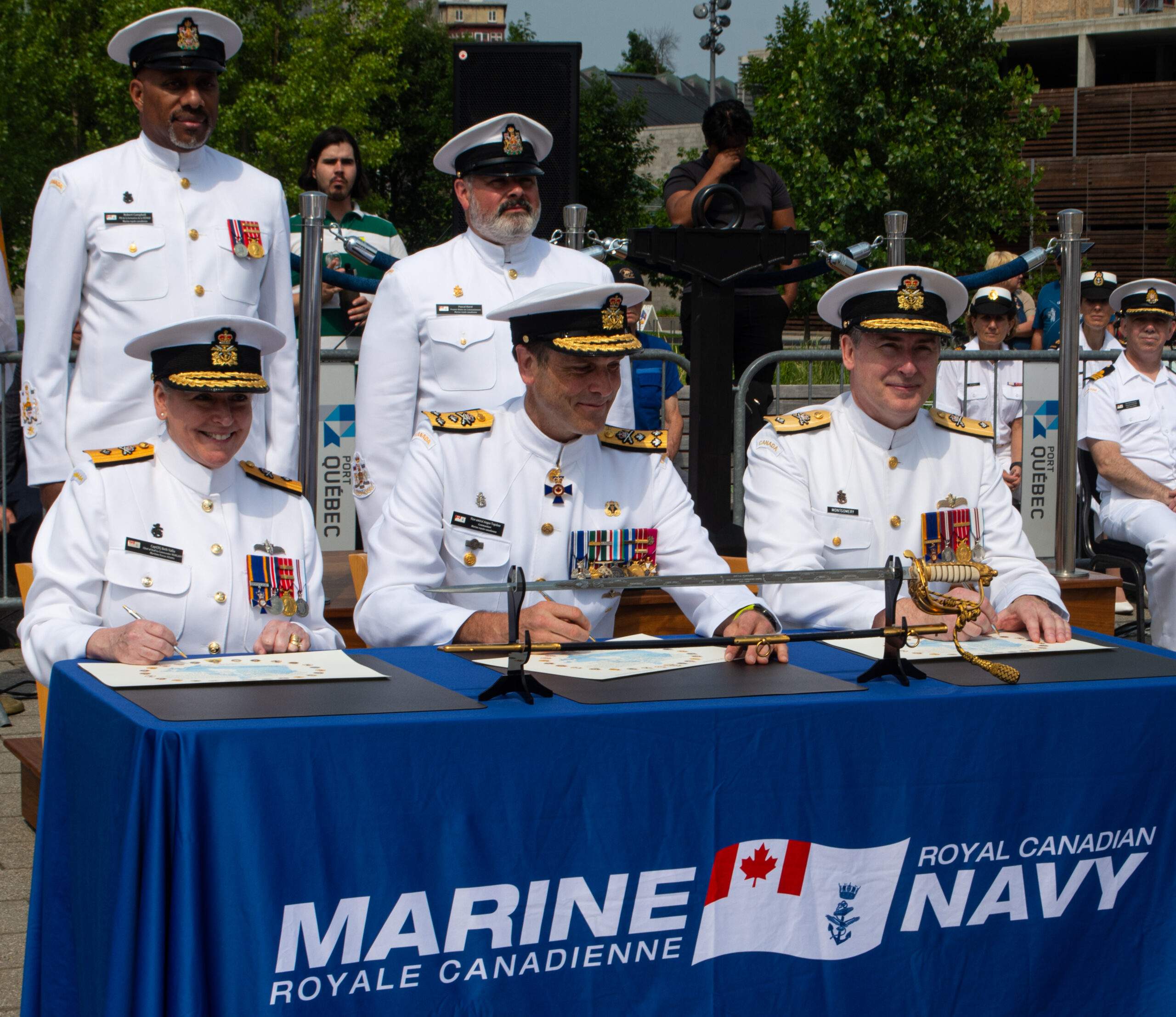 Under a bright blue sky at Quay 22 on July 19, the Royal Canadian Naval Reserve gave a final salute to its outgoing commandant Patrick Montgomery and welcomed the newly appointed Commodore Beth Vallis. Vice-Admiral Angus Topshee, Commander of the Royal Canadian Navy (RCN), presided over the Change of Command ceremony, which included a parade of Naval Reservists and band.